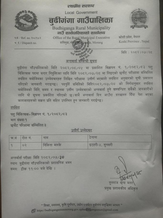बुढीगंगा गाउँकार्यपालिकाको कार्यालयमा कार्यरत कर्मचारीहरुको सम्पर्क विवरण