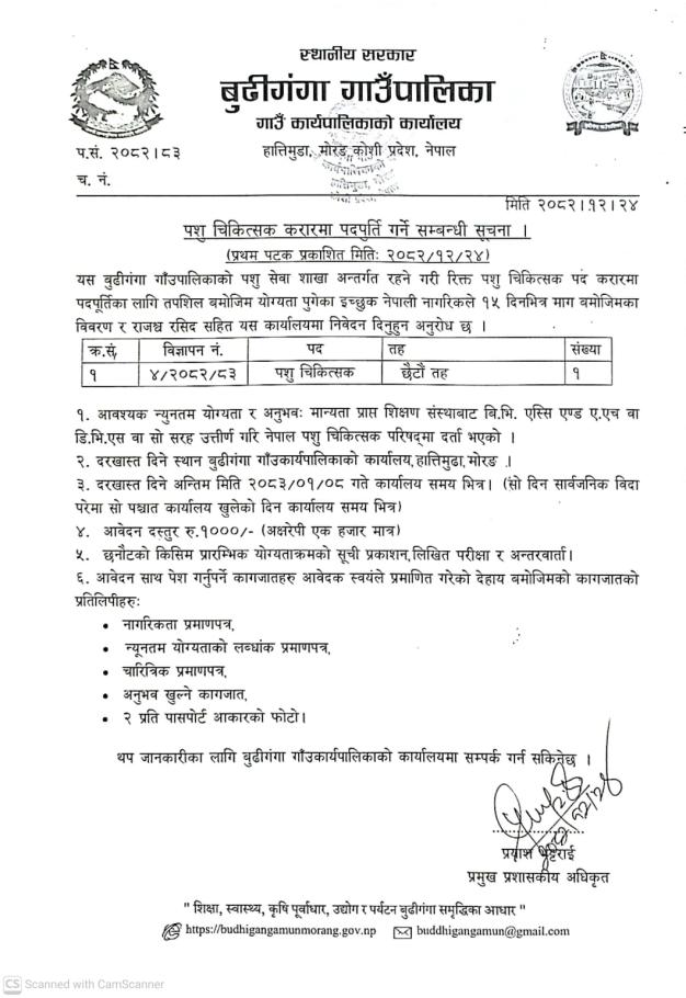 करारमा पदपुर्ति गर्ने सम्बन्धी सूचना ।