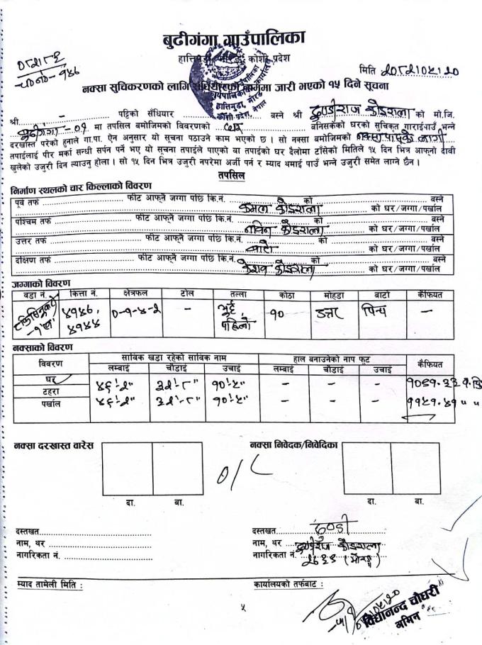 » नक्सा सूचिकरणका लागि संधियारको नाममा जारी भएको १५ दिने सूचना ।