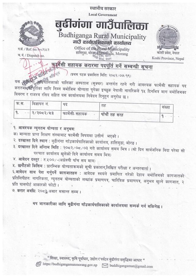 » फार्मेसी सहायक करारमा पदपुर्ति गर्ने सम्बन्धि सूचना ।
