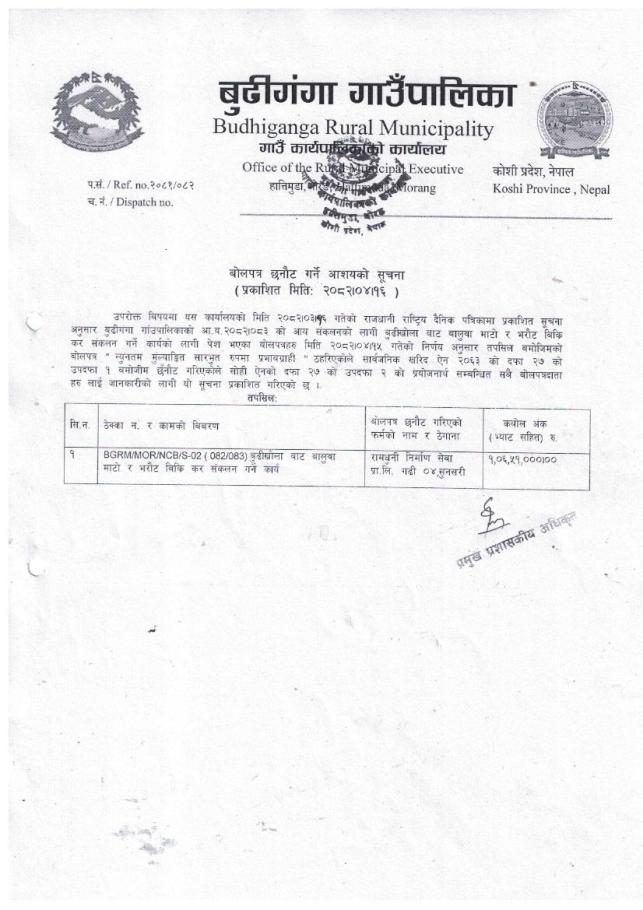» बोलपत्र छनौट गर्ने आशयको सूचना ।