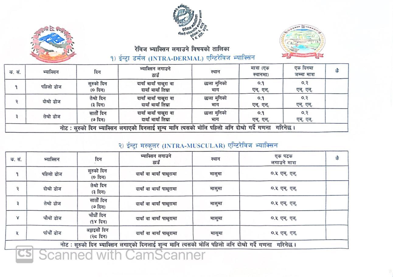 » एन्टि-रेबिज भ्याक्सिन सञ्चालन हुने वारे ।