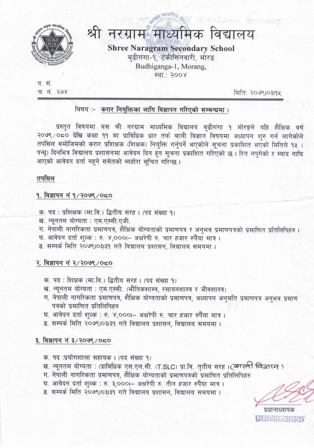 करार नियुक्तिको लागि विज्ञापन गरिएको सूचना