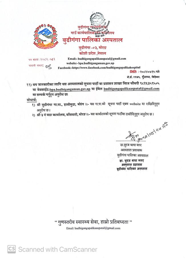 बुढीगंगा गाउँकार्यपालिकाको कार्यालयमा कार्यरत कर्मचारीहरुको सम्पर्क विवरण