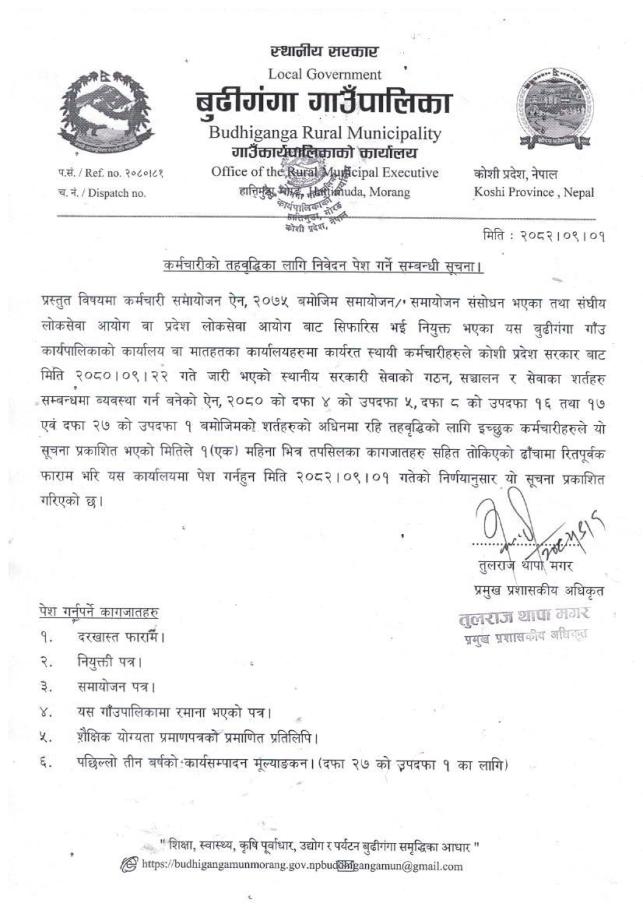 कर्मचारीको तहवृद्धिका लागि निवेदन पेश गर्ने सम्बन्धी सूचना ।