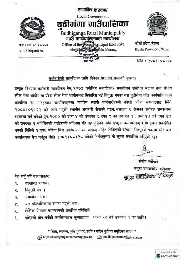 कर्मचारी तह वृद्धिका लागि आवेदन पेश गर्ने सम्बन्धि सूचना