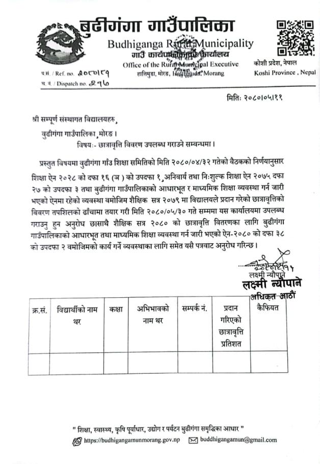 क्षात्रवृति विवरण उपलब्ध गराउने सम्बन्धमा