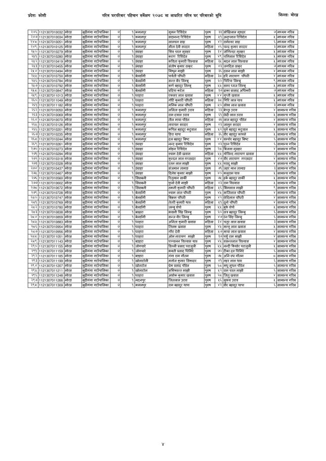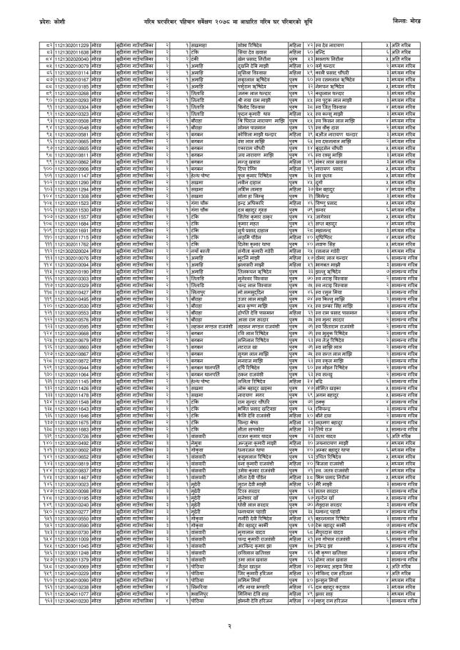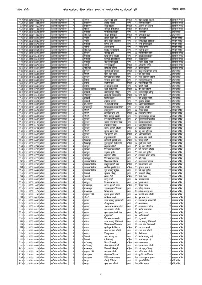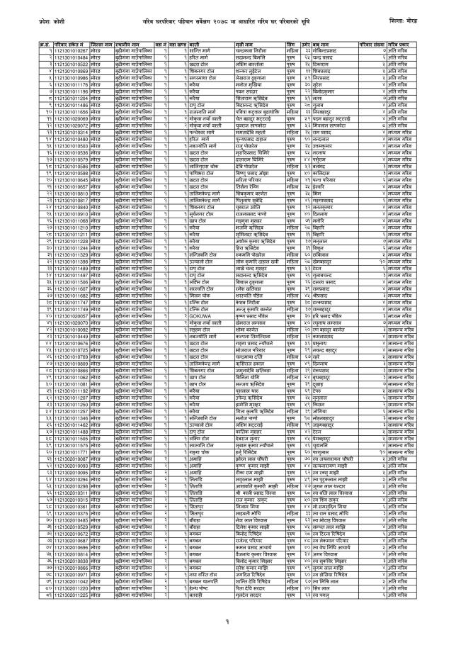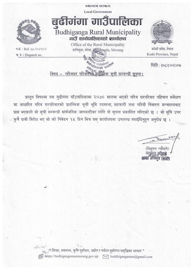 गरिब घरपरिवारको प्रारम्भिक सूची सम्बन्धी सूचना ।