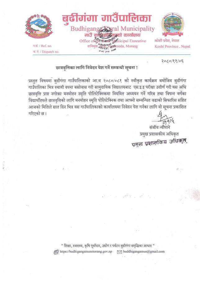 » छात्रवृत्तीका लागि निवेदन पेश गर्ने सम्बन्धि सूचना