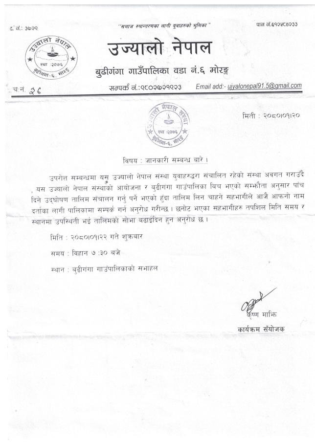 प्रस्तावना आव्हान सम्बन्धि सूचना ।