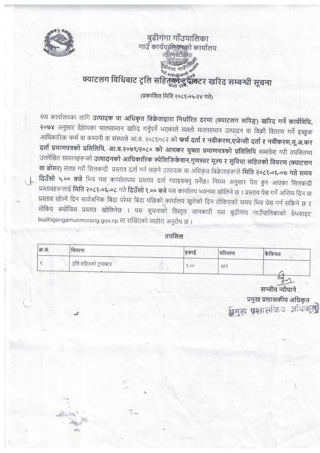 » ट्रयाक्टर खरिद सम्बन्धमा