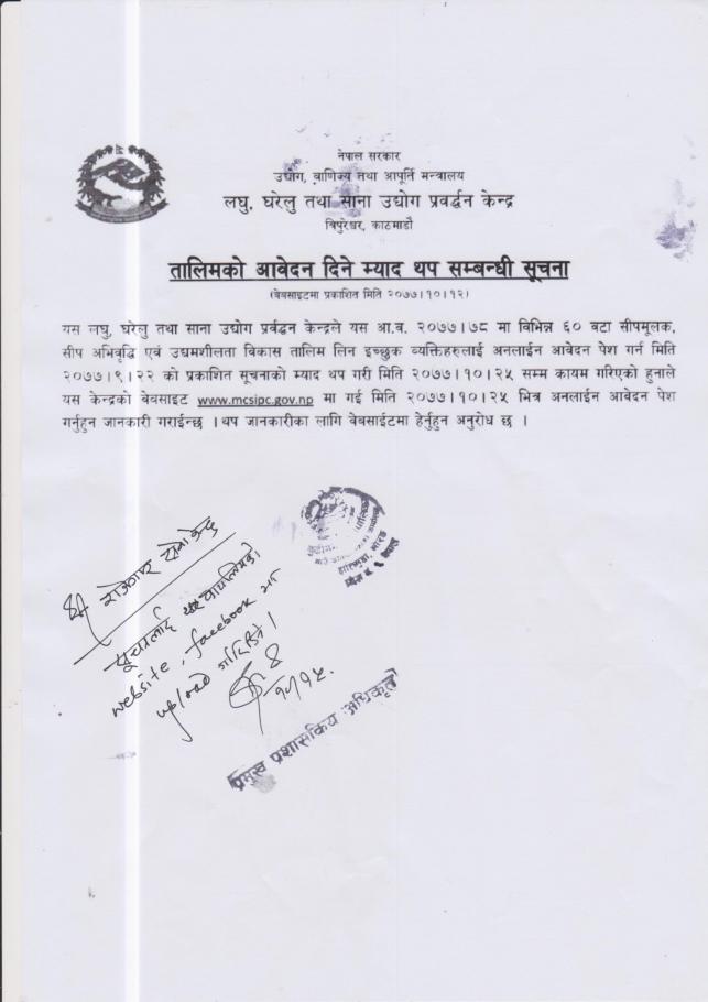 तालिम आवेदन दिने म्याद थप सम्बन्धी सूचना