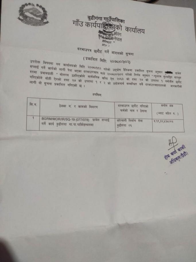 सार्वजनिक खरिद/बोलपत्र सूचना