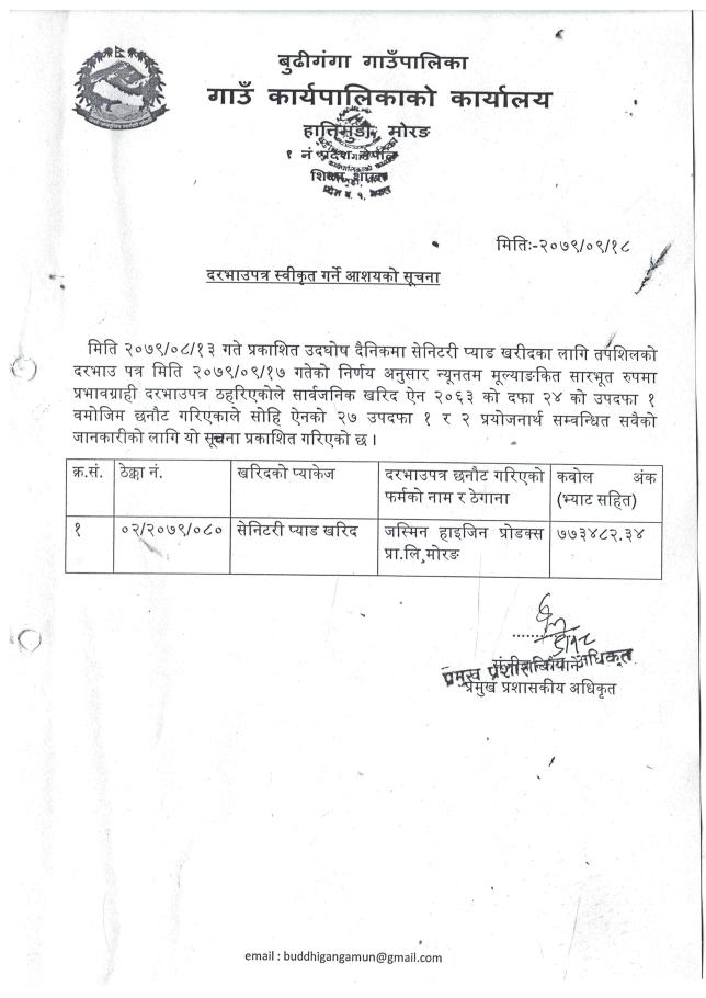 » दरभाउपत्र स्वीकृत गर्ने आशयको सूचना