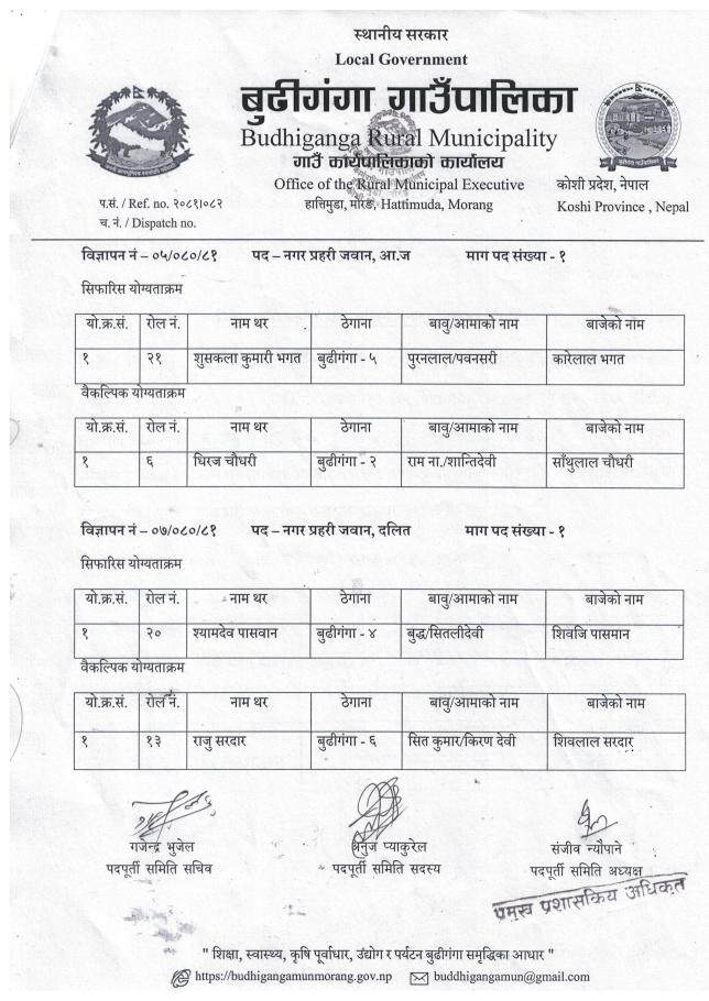 नगर प्रहरी पदको अन्तिम नतिजा प्रकाशन गरिएको