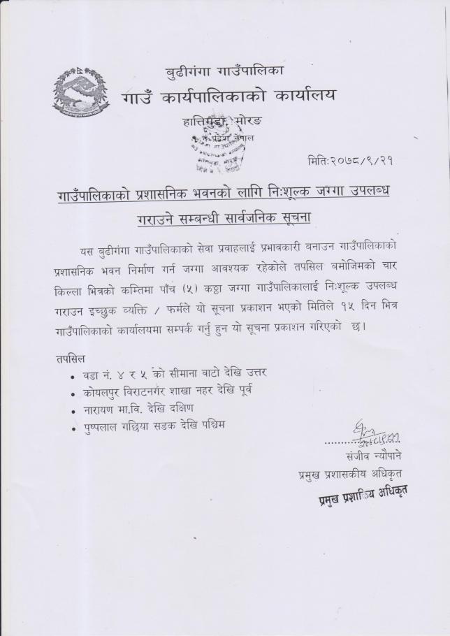 » निःशुल्क जग्गा उपलब्ध गराउने सम्बन्धि सार्वजनिक सूचना