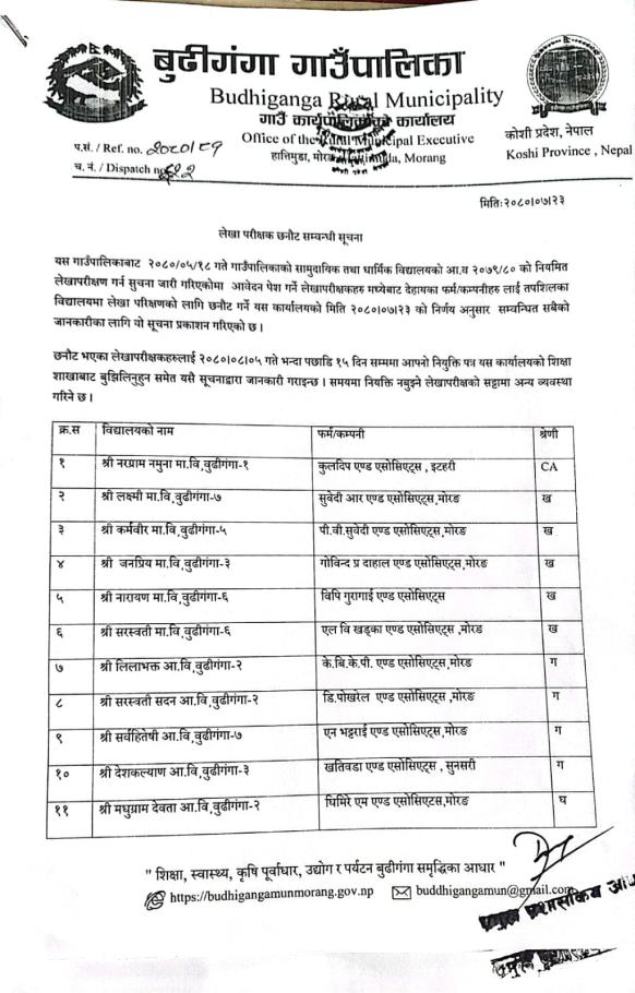 बुढीगंगा गाउँकार्यपालिकाको कार्यालयमा कार्यरत कर्मचारीहरुको सम्पर्क विवरण