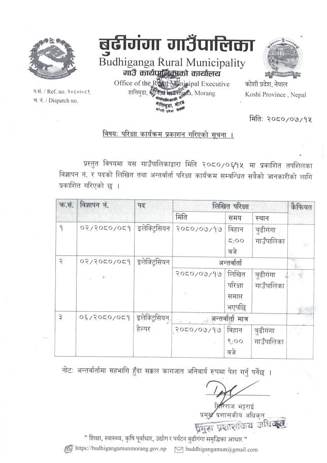 परीक्षा कार्यक्रम प्रकाशन गरिएको सूचना