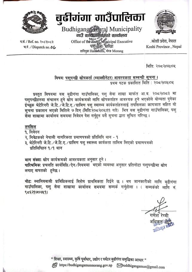 » पशुपन्छी खोपकर्ता आवश्यक्ता सम्बन्धी सूचना ।