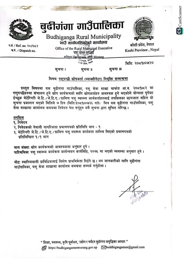 पशुपन्छी खोपकर्ता नियुक्ती सम्बन्धमा ।