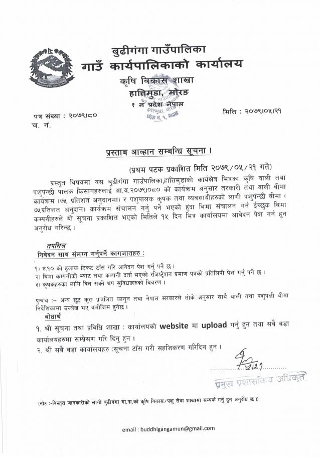 बोलपत्र पेश गर्ने आव्हानको सूचना ।