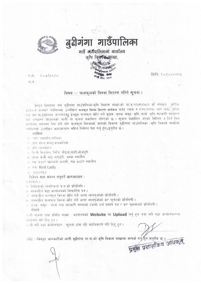 » फलफूल विरुवा वितरण गरिने सूचना