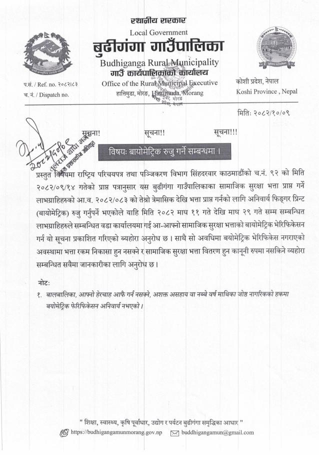 » बायोमेट्रिक रुजु गर्ने सम्बन्धमा ।