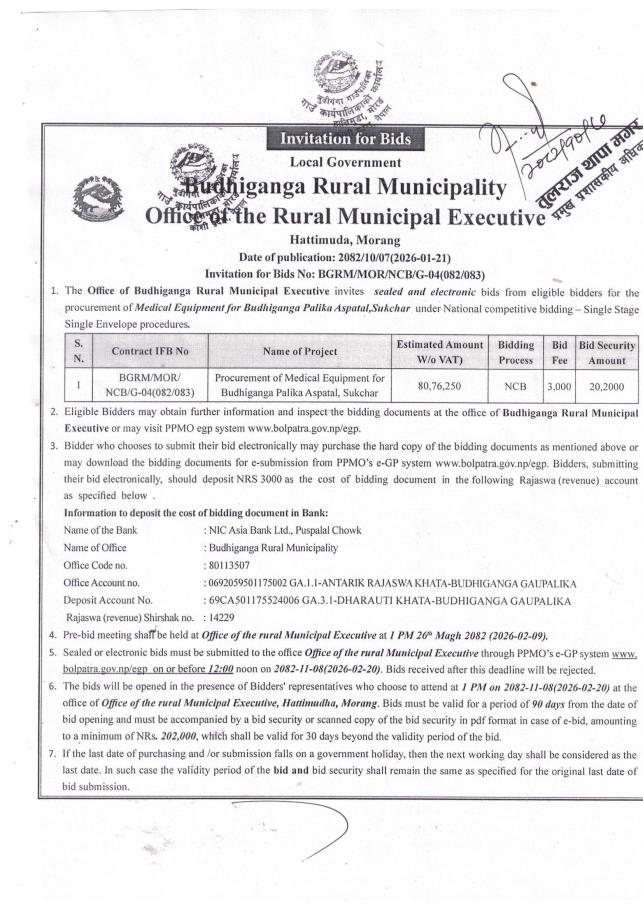 सार्वजनिक खरिद/बोलपत्र सूचना