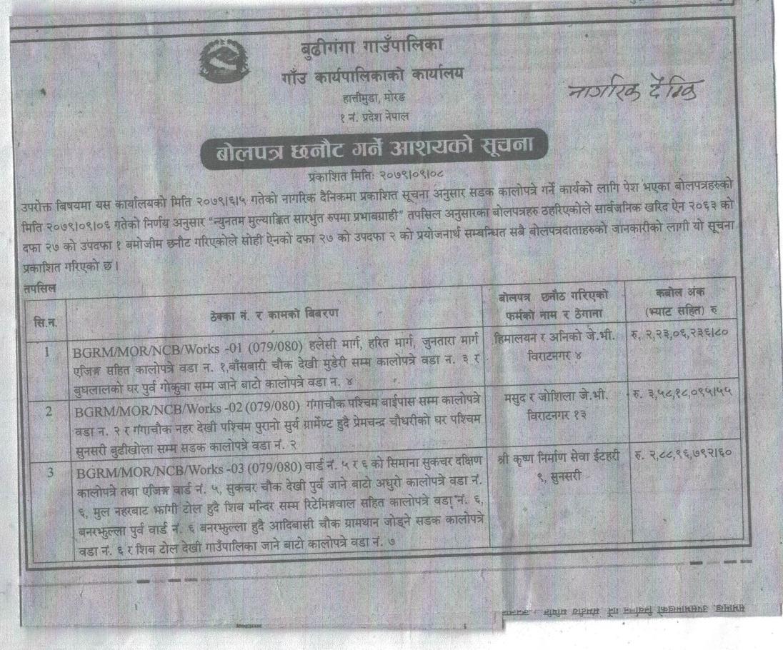 » बोलपत्र छनौट गर्ने आशयको सूचना