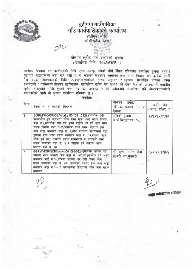 » बोलपत्र छनौट गर्ने आशयको सूचना