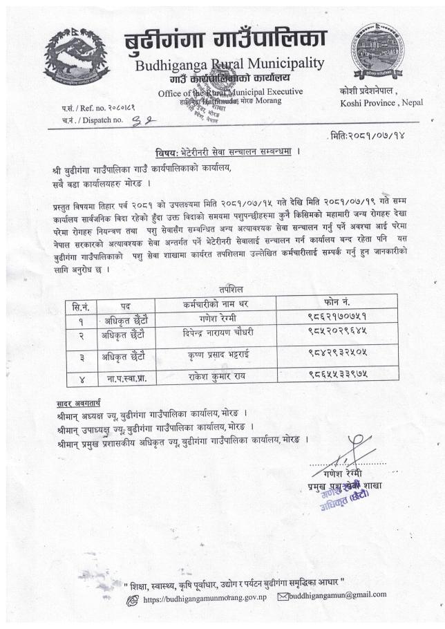 बुढीगंगा गाउँकार्यपालिकाको कार्यालयमा कार्यरत कर्मचारीहरुको सम्पर्क विवरण