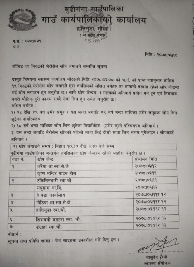 » भेरोसेल खोप लागाउने सम्बन्धमा
