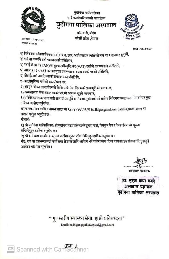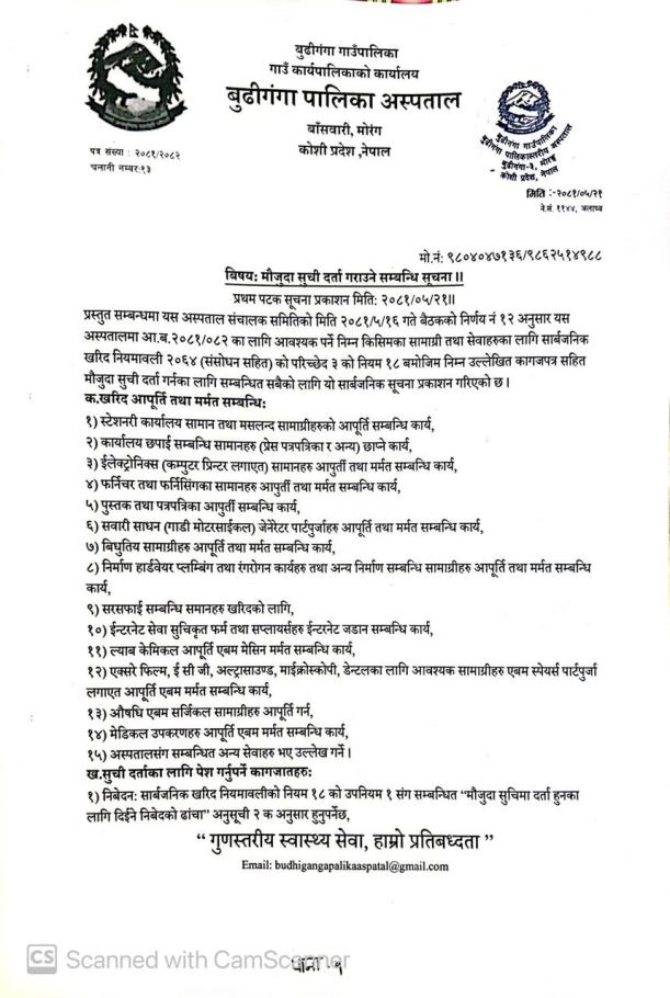 सार्वजनिक खरिद/बोलपत्र सूचना