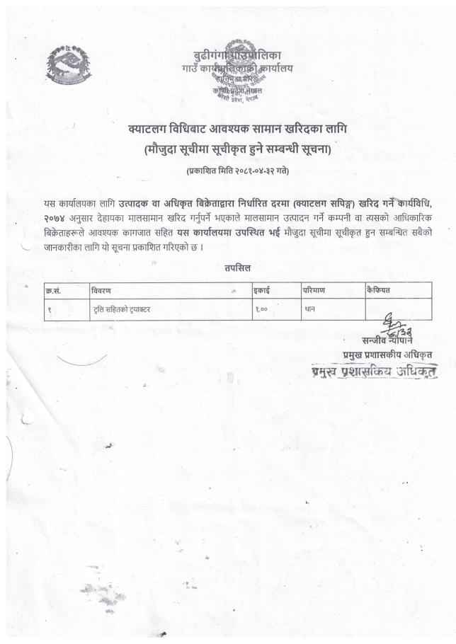 मौज्दात सूचिमा सूचिकृत हुने सम्बन्धि सूचना