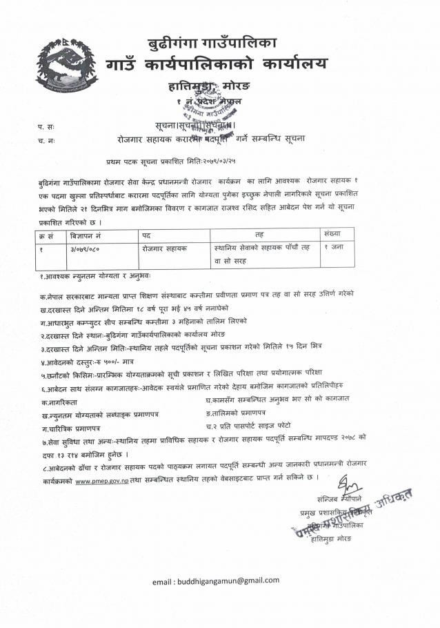 रोजगार सहायक करारमा पदपुर्ति गर्ने सम्बन्धमा