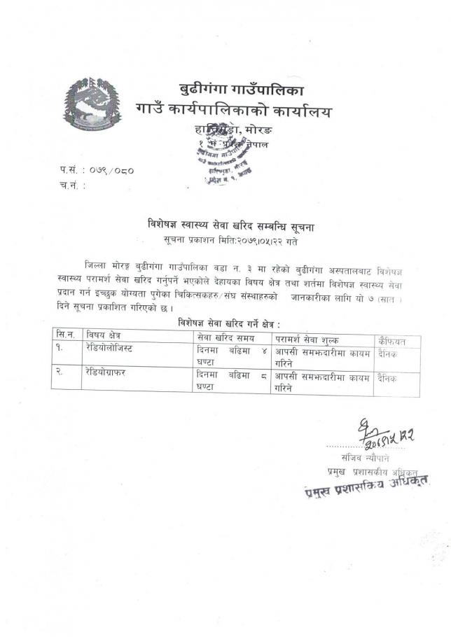 विशेषज्ञ स्वास्थ्य सेवा खरिद सम्बन्धि सूचना