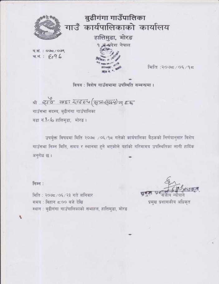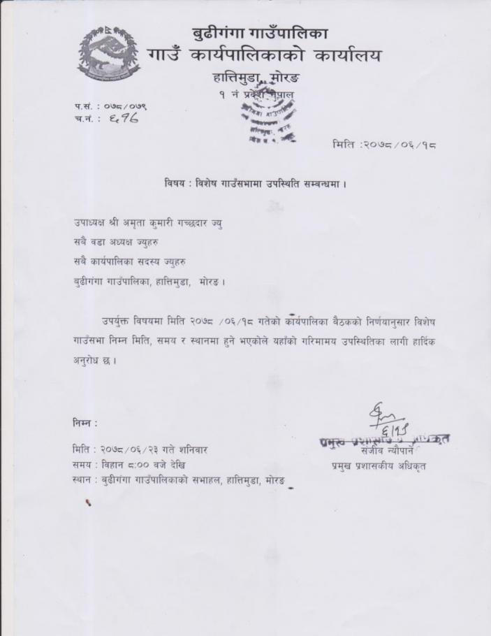 विशेष गाउँसभामा उपस्थित सम्बन्धमा