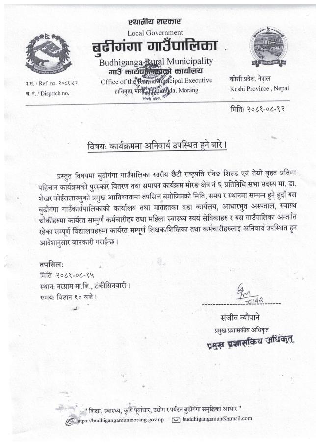 » विषयः कार्यक्रममा अनिवार्य उपस्थित हुने बारे ।