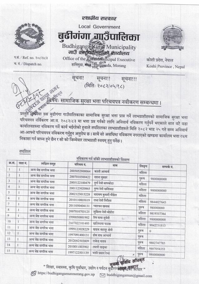 विषयः सामाजिक सुरक्षा भत्ता परिचयपत्र नवीकरण सम्बन्धमा ।