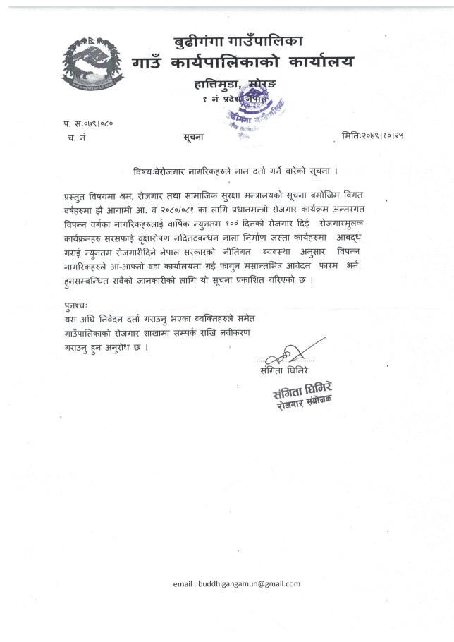 वेरोजगार नागरिकहरुले नाम दर्ता गर्ने वारेको सूचना