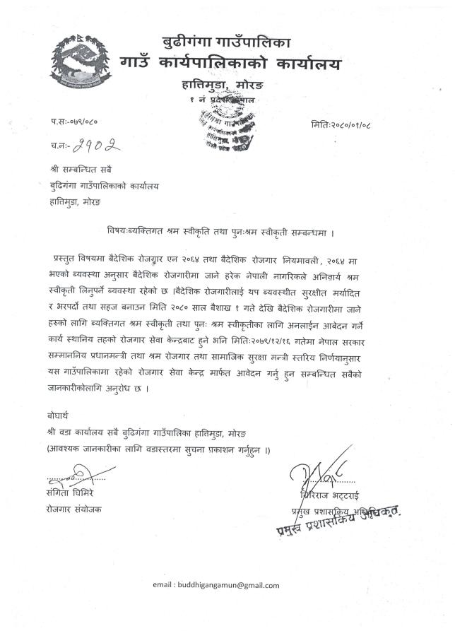 » व्यक्तिगत श्रम स्वीकृति तथा पुनः श्रम स्वीकृत सम्बन्धमा