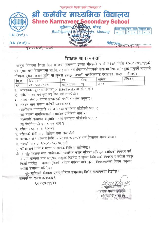 वडा कार्यालयमा कार्यरत कर्मचारीहरुको सम्पर्क विवरण