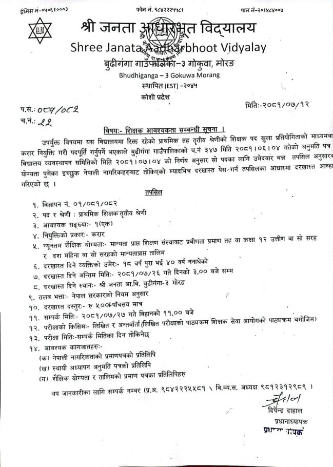 » शिक्षक आवश्यक्ता सम्बन्धी सूचना