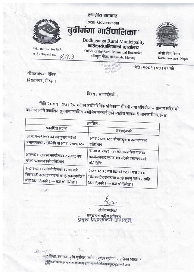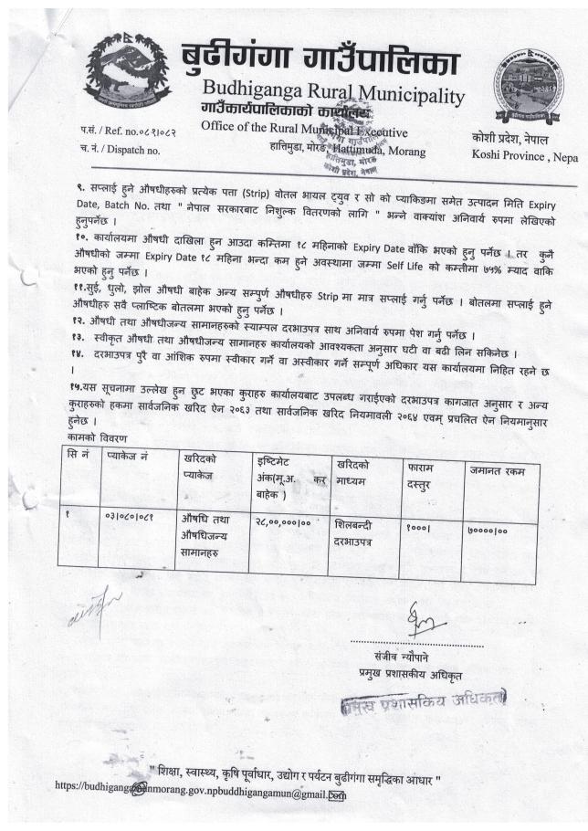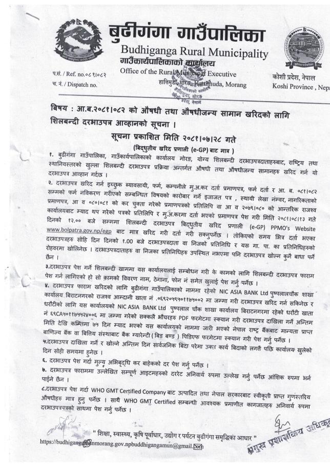 सार्वजनिक खरिद/बोलपत्र सूचना