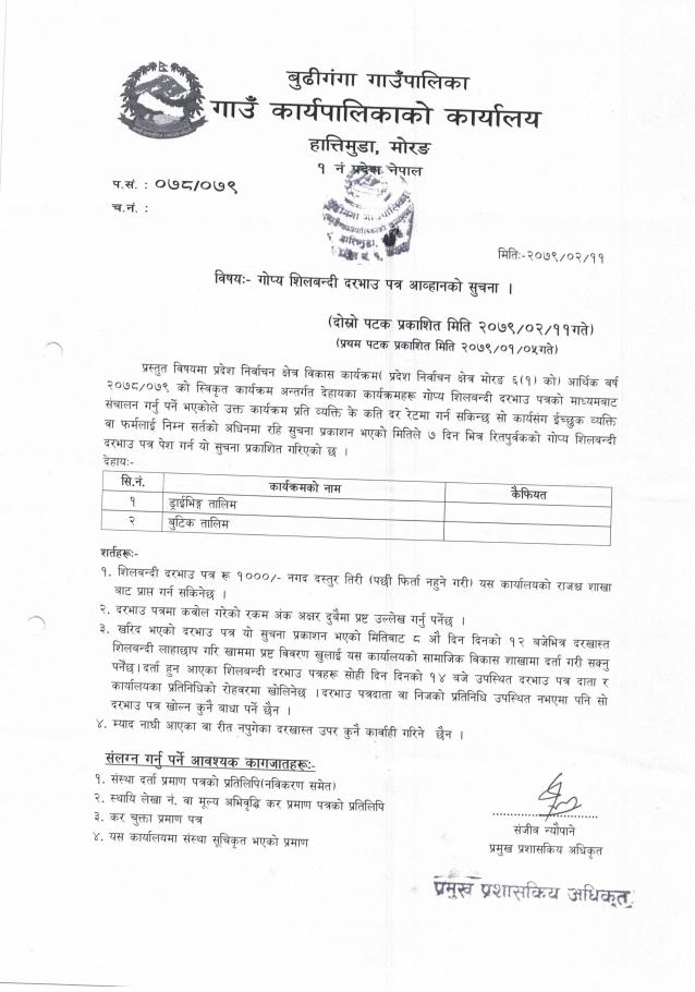 » शिलबन्दी दरभाउ पत्र आव्हानको सूचना