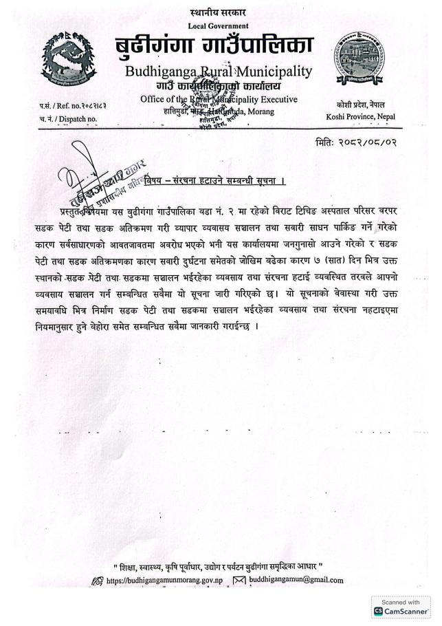 संरचना हटाउने सम्बन्धी सूचना ।