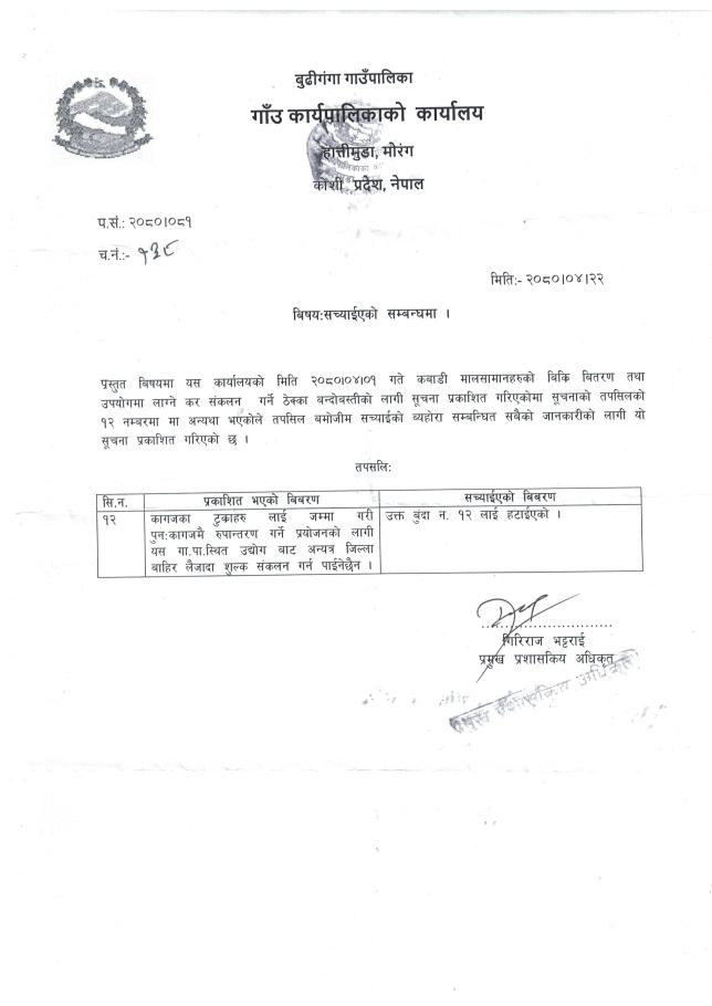 १५ दिने सूचना ।