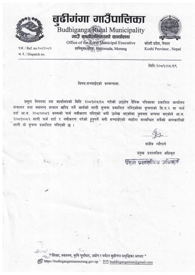 सार्वजनिक खरिद/बोलपत्र सूचना
