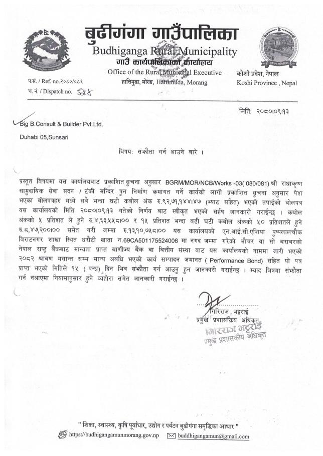 बुढीगंगा गाउँपालिका, गाउँ कार्यपालिकाको कार्यालय