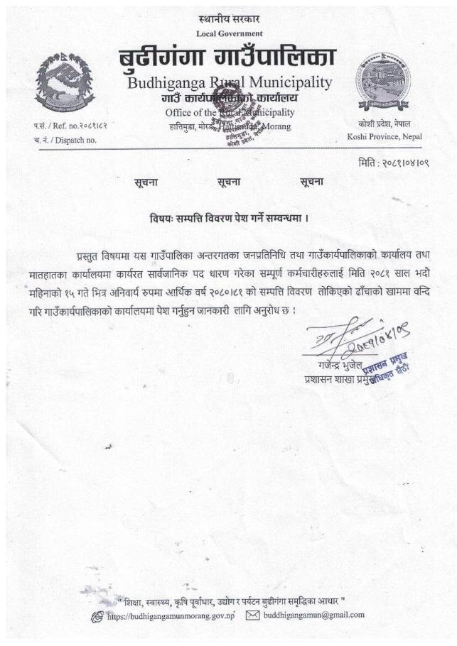 सम्पत्ति विवरण पेश गर्ने सम्बन्धमा